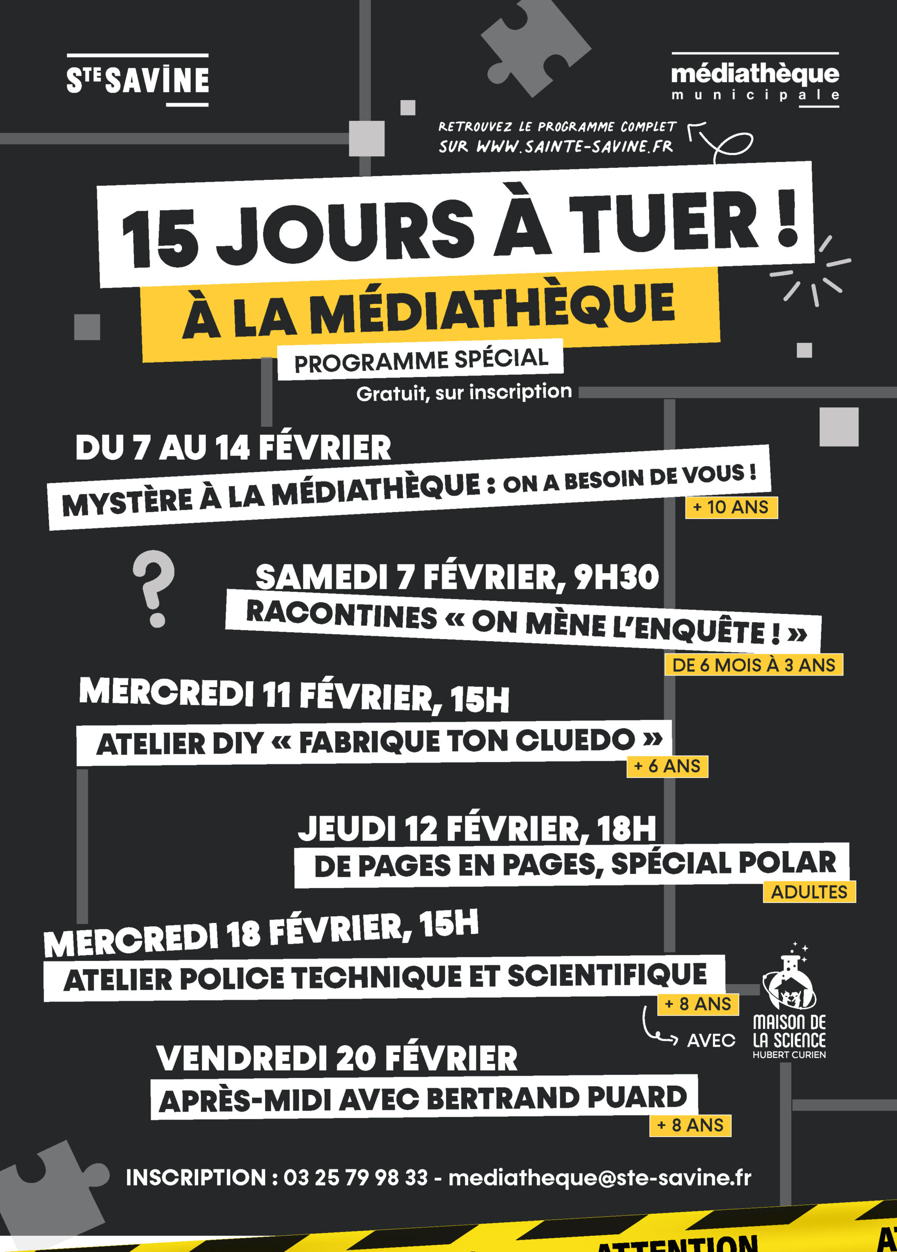 Dans le cadre de l’évènement « 15 jours à tuer! », des histoires et des comptines pleines de mystères pour détectives en herbe. De 6 mois à 3 ans.