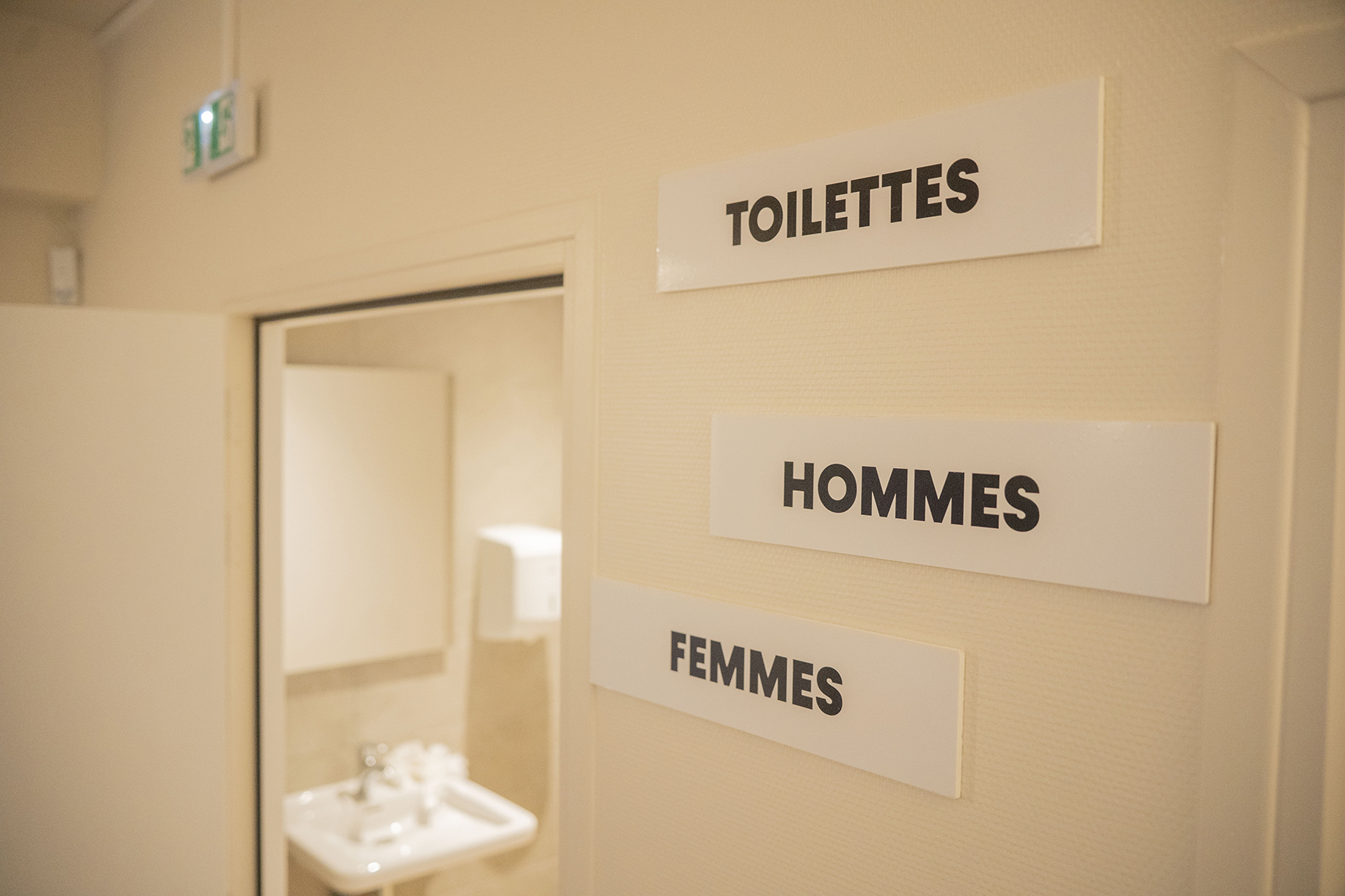L’aménagement de trois sanitaires accessibles aux personnes à mobilité réduite au rez-de-chaussée dont un ouvert au public aux horaires d’ouvertures de l’école de musique et de danse et deux dédiés à la salle avec un accès à la cuisine attenante simplifié.